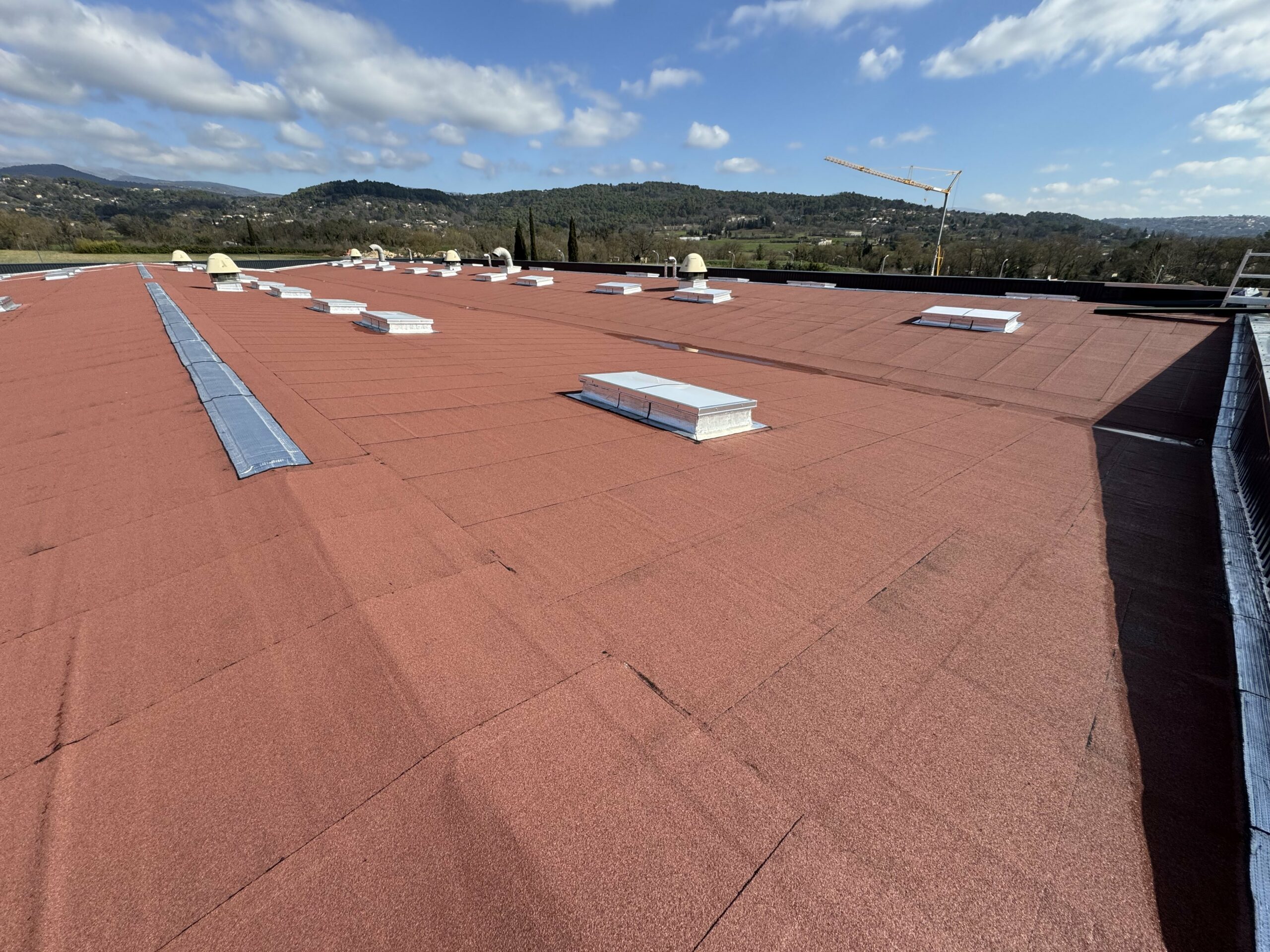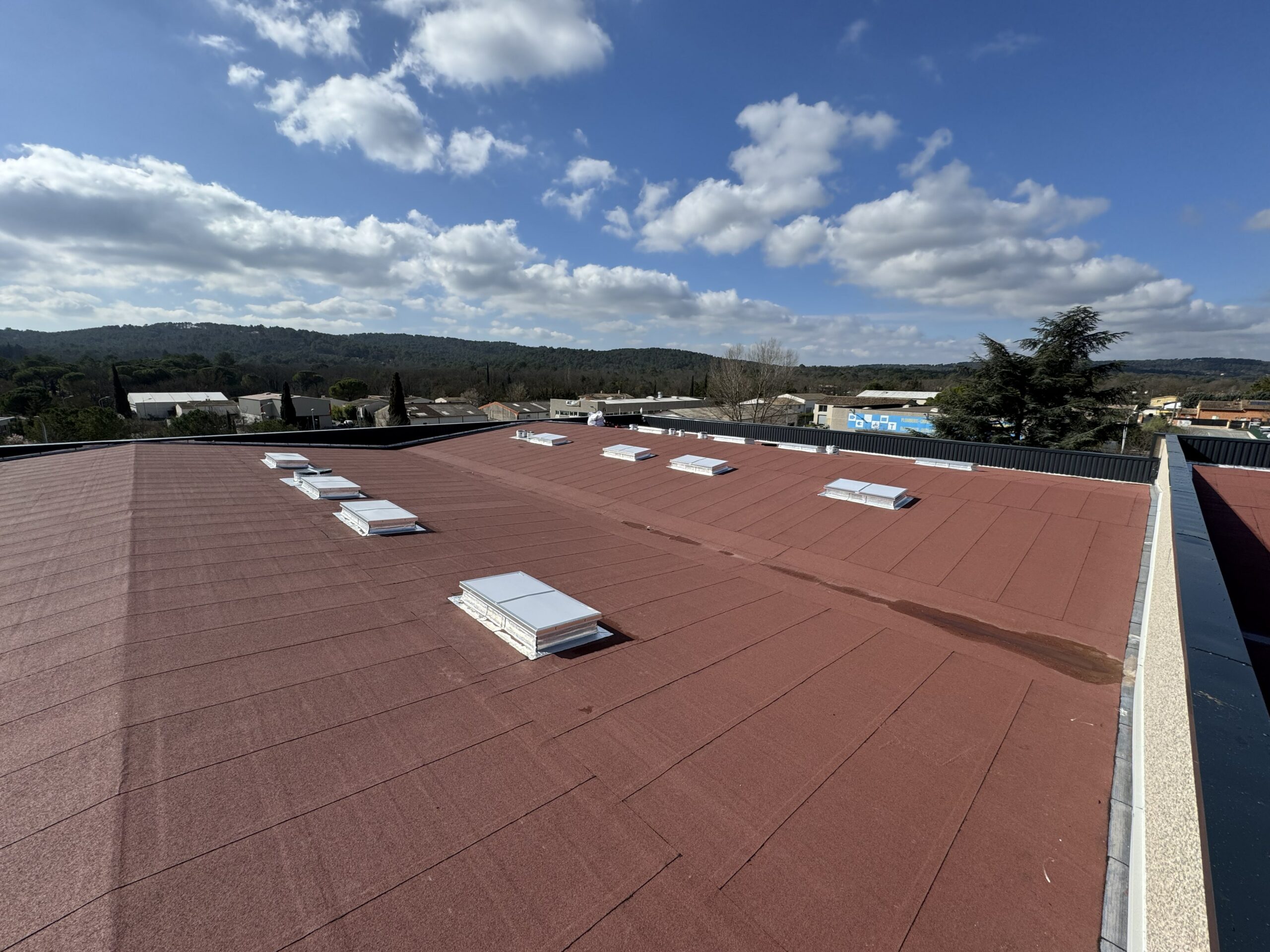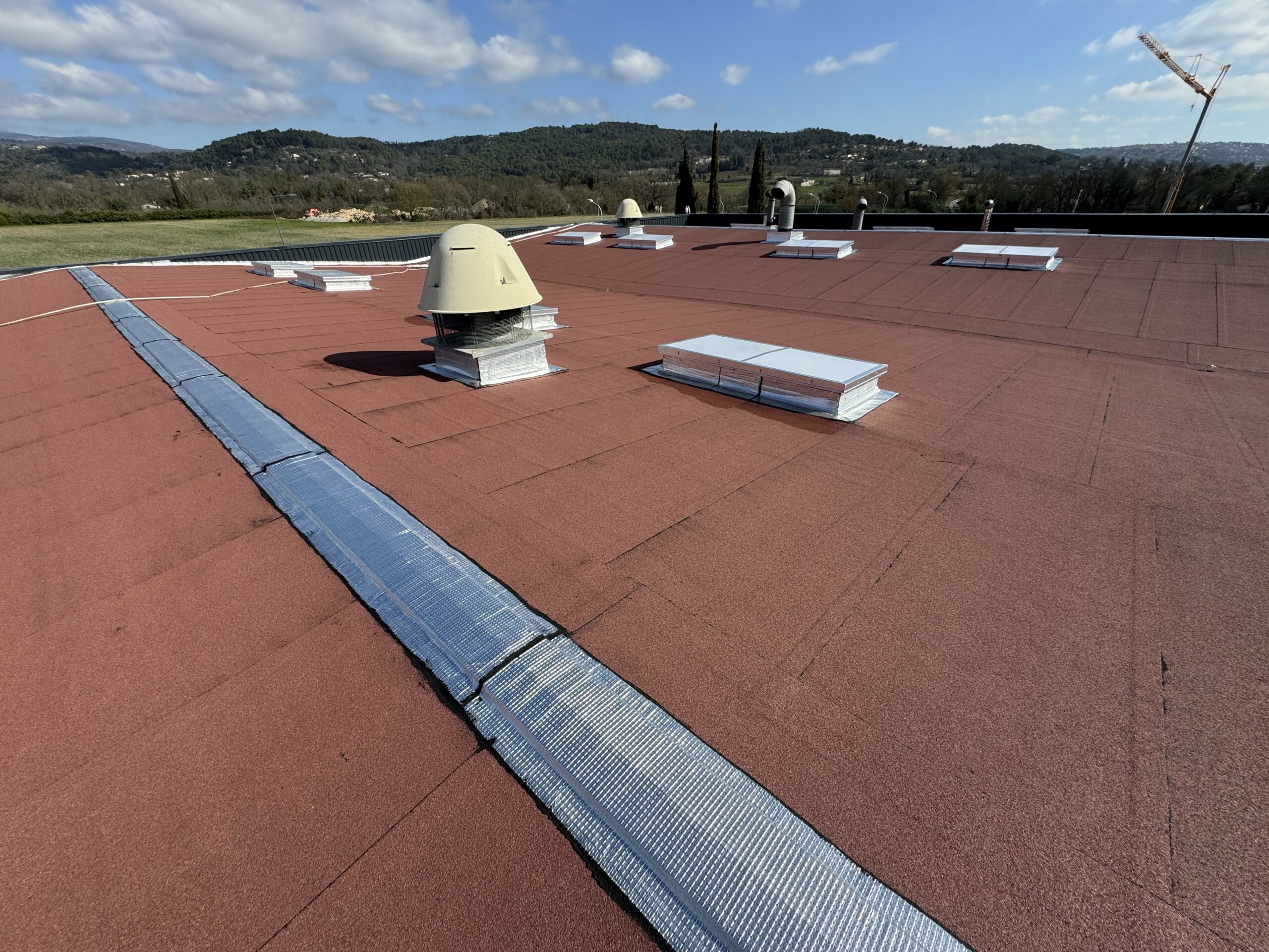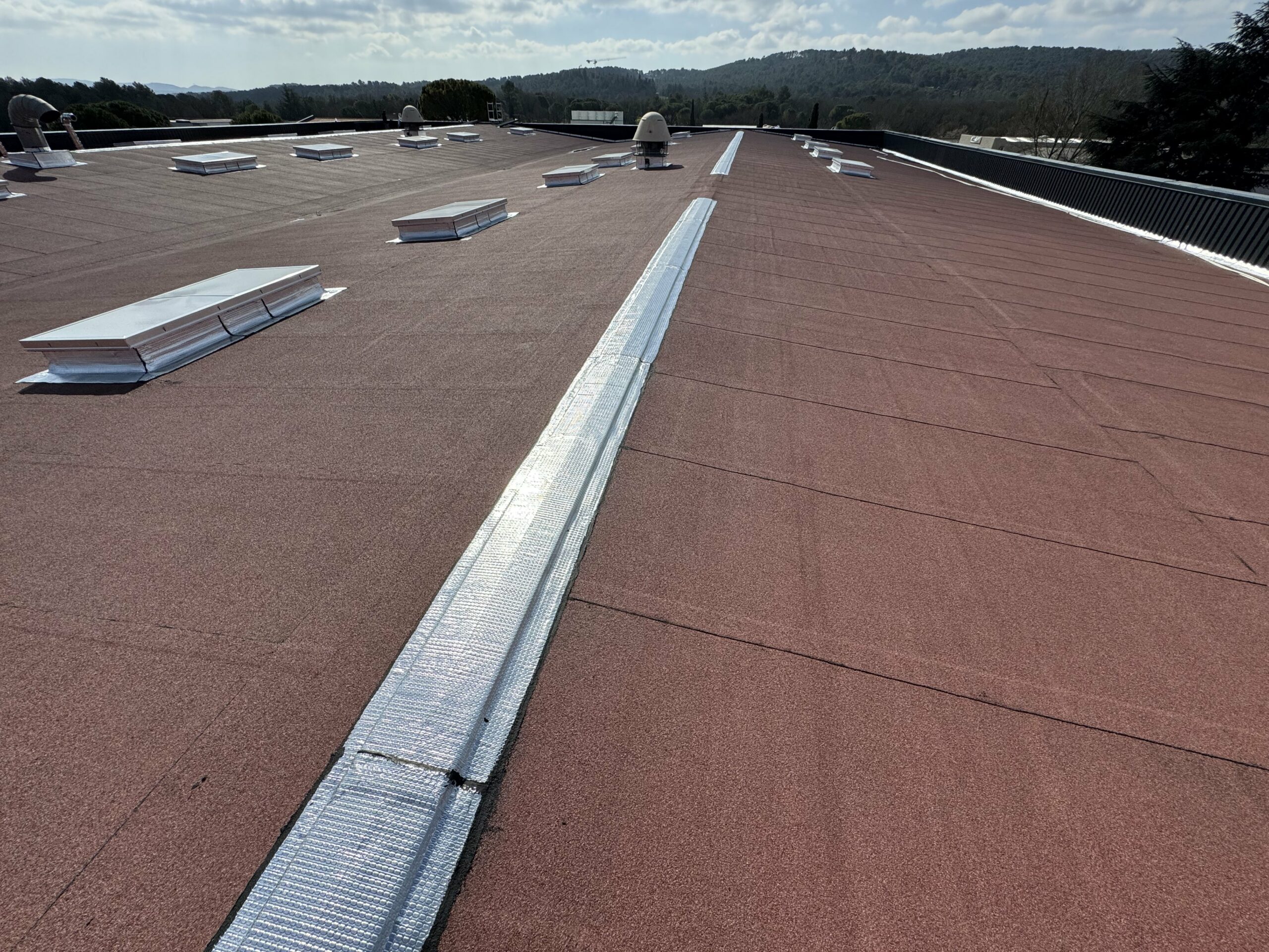 Réalisation de double isolation en LdR et étanchéité bicouche élastomère rouge = env. 4.000,00 m2