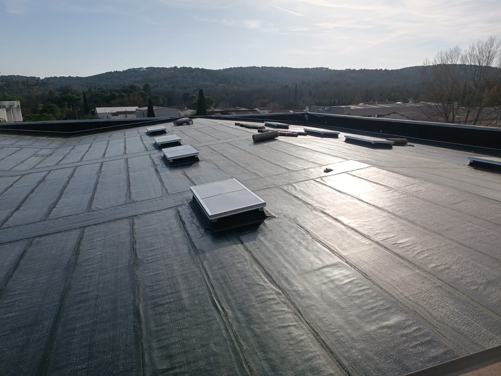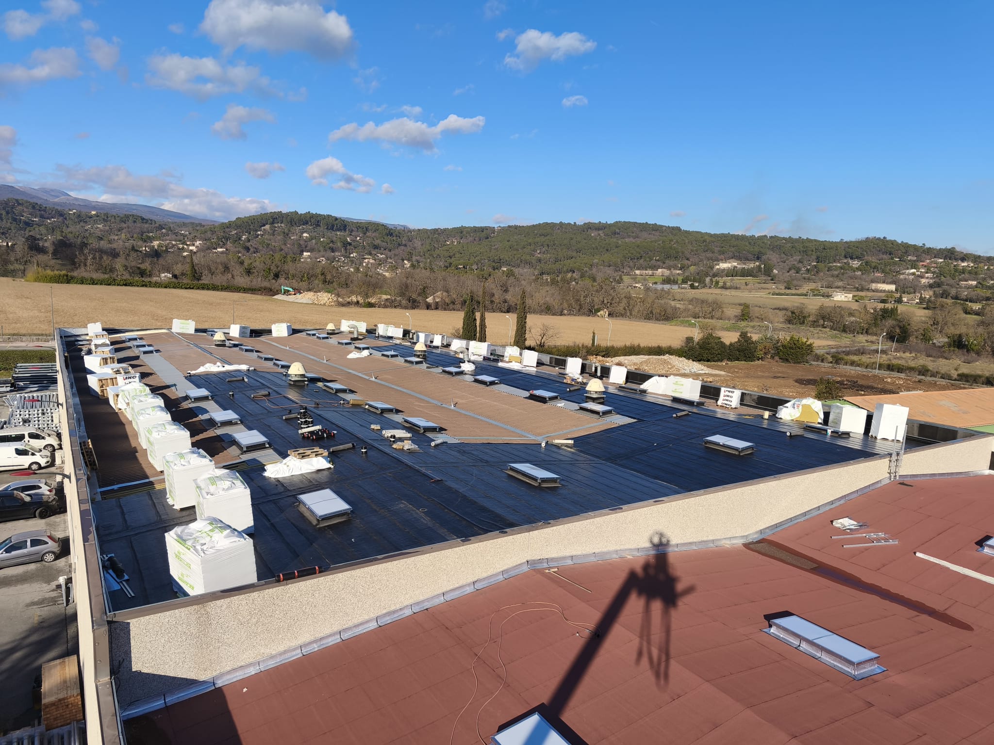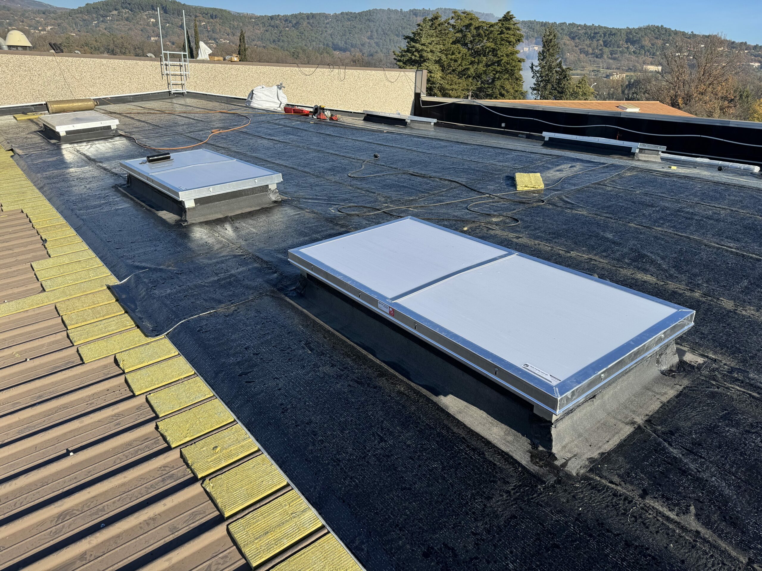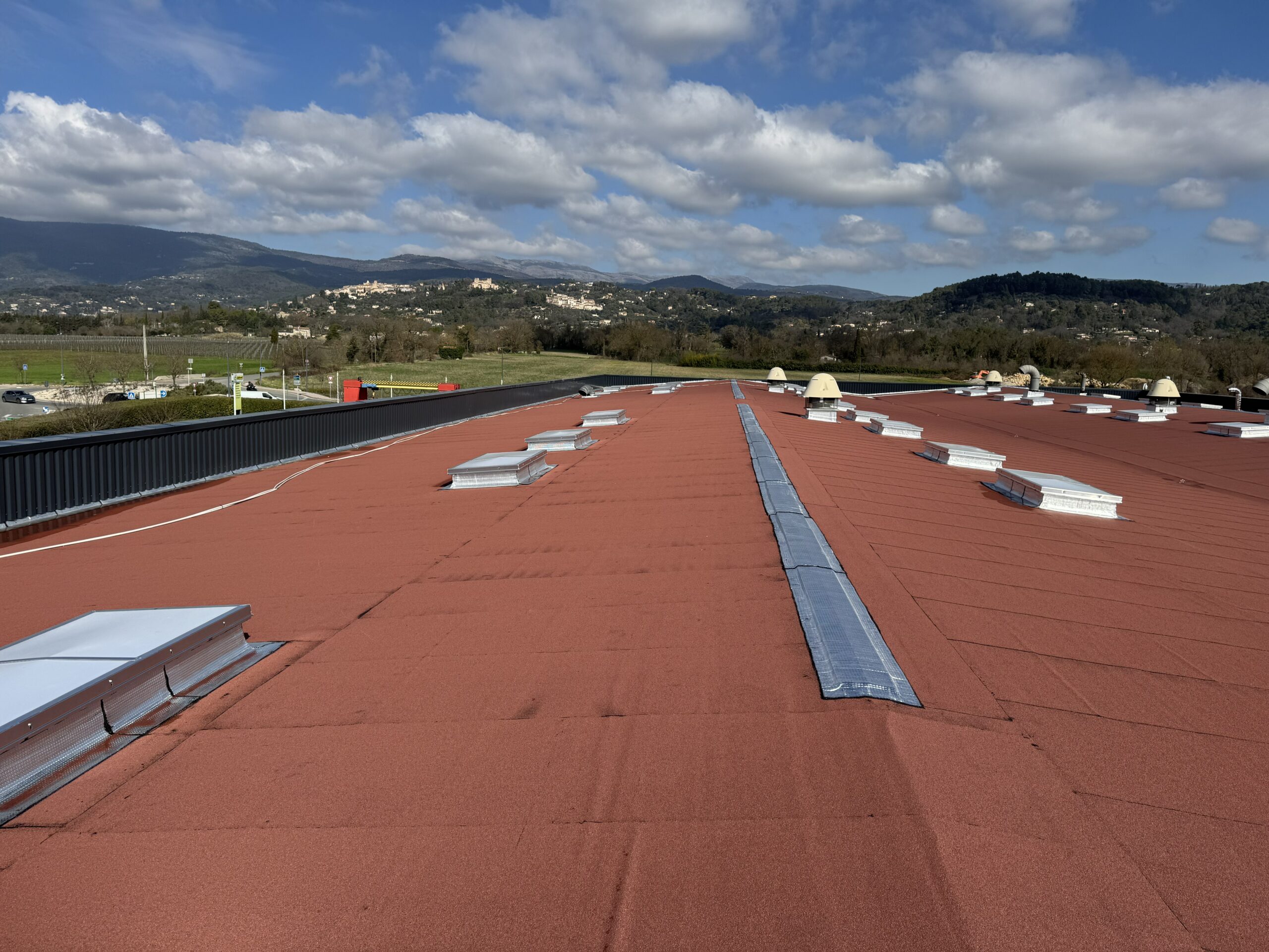 Réalisation de double isolation en LdR et étanchéité bicouche élastomère rouge = env. 4.000,00 m2